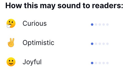 Not to end on that note, Grammarly doesn’t seem to know what a melancholic or even depressed text looks like. Here’s its impression on this email: